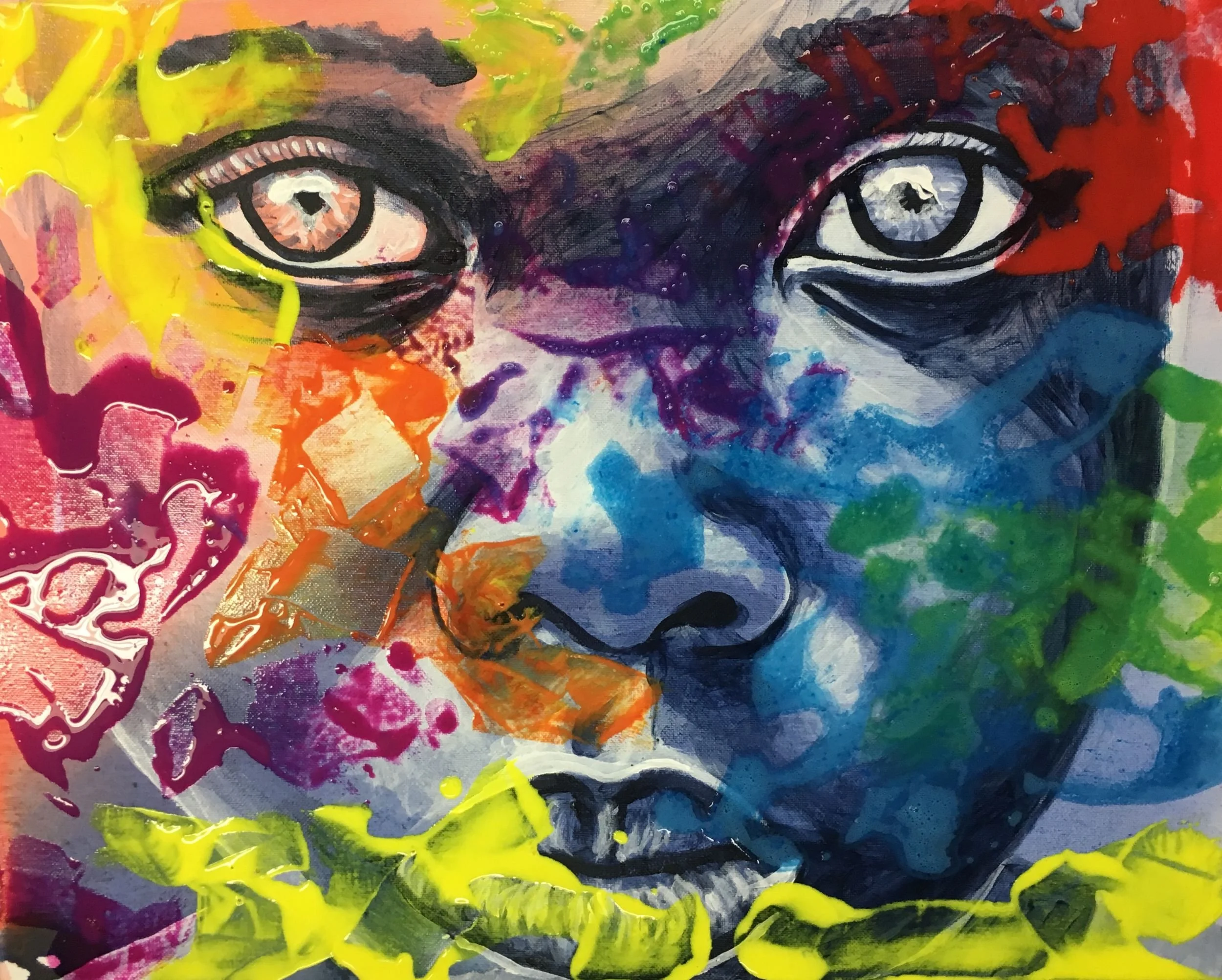 By utilizing a high-contrast acrylic methodology, the piece explores the 'dry cry'—an expression of grief and endurance that persists when the capacity for outward mourning has been exhausted. Originally exhibited at the Macon Arts Alliance, this work establishes the artist’s long-term commitment to naming the invisible traumas of the marginalized, a thread that continues through the Rōstrum and Living in Tents interventions in Kansas City